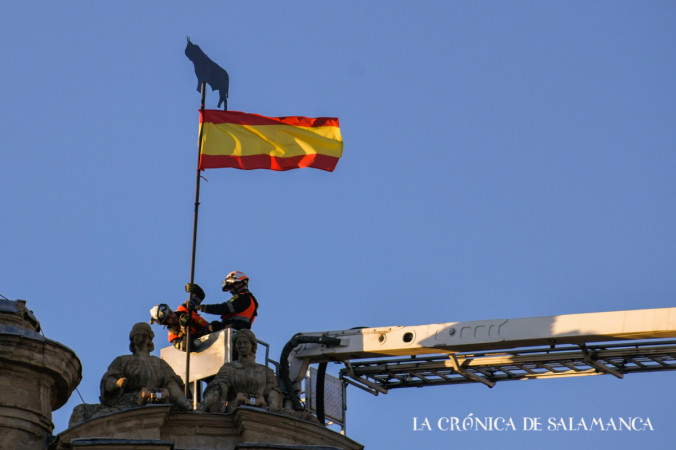 Este lunes, los bomberos municipales colocaron La Mariseca en la espadaña del Ayuntamiento, donde permanecerá hasta el próximo 15 de septiembre. La Mariseca es un símbolo compuesto por la bandera española y la silueta negra de un toro que anuncia la celebración de las Ferias y Fiestas de Salamanca, en honor a Santa María de la Vega.