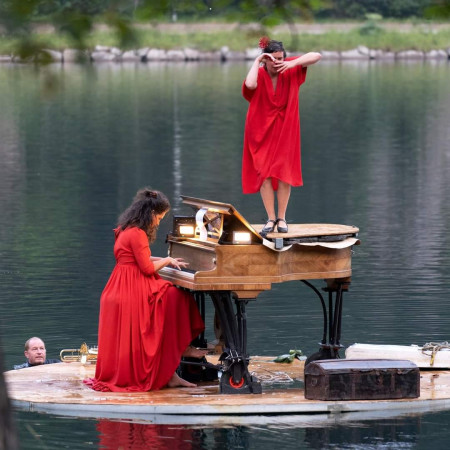 Es una propuesta original de la compañía Le PianO du Lac que rompe con el marco del concierto clásico y lo traslada a lugares inauditos, en este caso, al río Tormes. Un acontecimiento musical en un escenario sin precedentes que produce imágenes inéditas, sonidos sorprendentes y una interacción basada en la música y la danza sobre el agua. En este gran ballet acuático se funden las melodías de la flauta, la percusión y los pasos de baile.