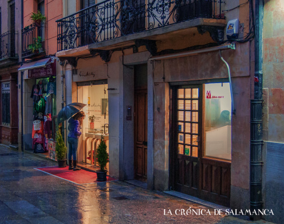 Parece que a algunos la luz les hace daño, como a los vampiros, y quieren oscurecer las ciudades. Si sirviera para algo privar al loro de su chocolate lo entenderíamos, pero no es así. El análisis racional lleva a colegir razones más profundas, las que espantan a quienes nos calzan la rueda de molino en la sagrada eucaristía. En fin, que esto nos sirve para recordar de nuevo a Luis Monzón, que inmortalizó con su cámara la Salamanca crepuscular, entre dos luces, la del sol agonizante y los focos que comenzaban a iluminar.
