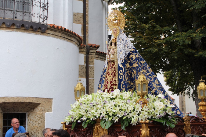 Miles de bejaranos y visitantes han arropado a la imagen de la Virgen del Castañar en la tradicional procesión que, como cada año, tiene lugar el día grande de las Fiestas. En esta ocasión, la jornada ha sido aún más especial, ya que desde las fiestas de 2019 la Patrona de Béjar no había podido salir del Santuario.