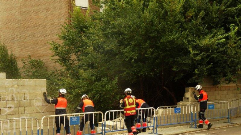 Los bomberos comprobaron la estabilidad o no del muro y colocaron vallas para evitar problemas. Además, los bomberos derriban el muro de bloques de hormigón en calle Francisco Montejo esquina paseo César Real de la Riva.