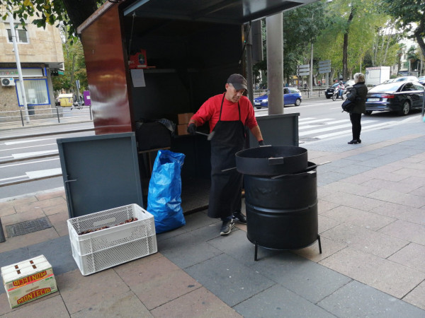 Otro indicio más de que estamos en otoño, aunque la temperatura que marcan los termómetros no lo reflejen. Hablamos de los puestos de castañas que ya están colocando los operarios en distintas calles y plazas de la ciudad.