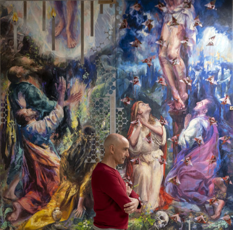 No estaba previsto, pero las filtraciones precipitaron el anticipo y hace unos días, por fin, se anunció que Florencio Maíllo es el autor de una obra grandiosa que pronto quedará expuesta en la Catedral Nueva de Salamanca. Daniel Sánchez, canónigo emérito que en gloria esté, fue el promotor y mecenas, hace varios años, de un proyecto iconográfico destinado a mostrar el mensaje salvífico con tres enormes cuadros a instalar en los muros de la girola. Tres pintores recibieron el encargo y a finales de septiembre se colocó discretamente la primera obra, en el lado del evangelio. La diócesis apenas le dio importancia y tampoco lo haré yo. Ahora presentan la segunda y, cuando consideren, informarán sobre la tercera. No destripo la noticia.