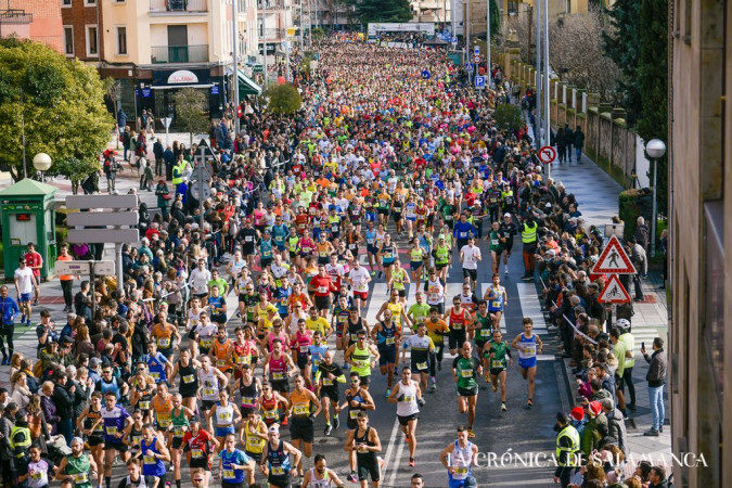 Pablo Sánchez en categoría masculina y Nuria Lugueros en la femenina se impusieron este lunes en la XXXVIII edición de la San Silvestre salmantina, la prueba deportiva con mayor participación de cuantas se celebran en la provincia. Había 6.433 dorsales asignados, pero siempre se apuntan cientos de corredores más que van por libre.
