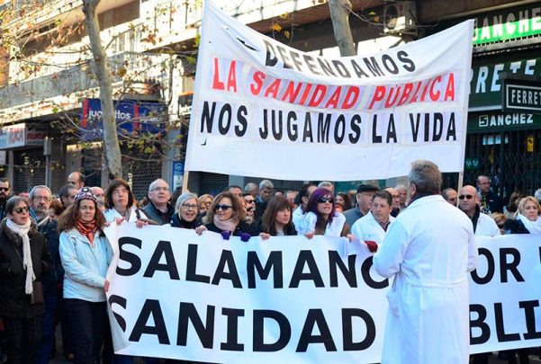 Es por ello que la única solución posible para frenar esta deriva es la unión de profesionales y sanitarios, y aun así es una tarea hercúlea. Madrid lleva en 12 años 97 mareas blancas, la penúltima en el pasado noviembre sacó a la calle más de 600.000 personas, a pesar de los intentos continuados por desprestigiar el movimiento ciudadano, y tiene convocada una más para el día 12 de febrero. Andalucía, Murcia, Aragón, Baleares, Cataluña, Euskadi, Extremadura, Cantabria, Galicia, Navarra, Valencia… tienen convocadas también huelgas, mareas blancas o distintos tipos de movilizaciones. En algunas de ellas los gobiernos autonómicos están llegando a acuerdos con los médicos. En Castilla y León, con el caso paradigmático del hospital de Burgos y el abandono de la atención primaria en toda la comunidad, existen movilizaciones en el Bierzo y Burgos y en Salamanca bajo el lema “Nos sobran los motivos” está convocada una nueva marea para el próximo 29 de enero por la Plataforma de Salamanca de Defensa de la Sanidad Pública.