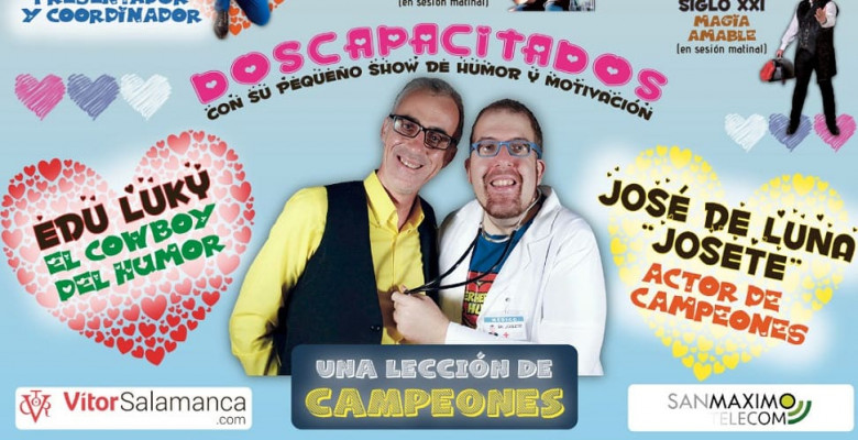 Por su parte, el domingo día 12 contará con la intervención de Edu Luky -el cowboy del amor- y José de Luna ‘Josete’ -actor de ‘Campeones’, quienes traerán su show ‘Doscapacitados’. Asimismo, actuarán Las Divinas (humor gestual), Alberto Cabrillas y el dúo formado por Maestro Ruiz y Miguelón, así como Chema Portilla y Merlín Siglo XXI, estos dos últimos en la sesión matinal. Nuevamente, Víctor Samarkanda ejercerá como presentador del evento.