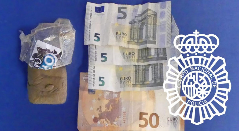 Los identificaron y localizaron oculto en la parte superior del pantalón del varón una pastilla de casi 50 gramos de hachís, así como dinero en efectivo ascendiendo a 115 euros. El hombre fue detenido y la droga intervenida por la Policía Nacional.