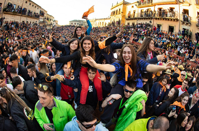Ciudad Rodrigo (Salamanca) estalló en la tarde de este viernes en fiestas con la decimocuarta edición del ‘Campanazo’ de su tradicional Carnaval del Toro. Miles de personas se concentraron en Miróbriga, acompañados de la música de diferentes charangas, en un recorrido que terminó en la Plaza Mayor inundada de pañuelos naranjas y un ambiente repleto de alegría.