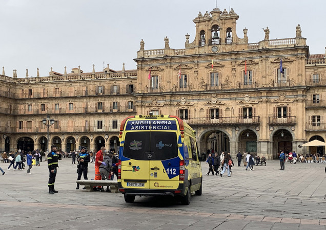 La ambulancia de soporte vital básico llegó al ágora salmantina sobre las 14.00 horas.