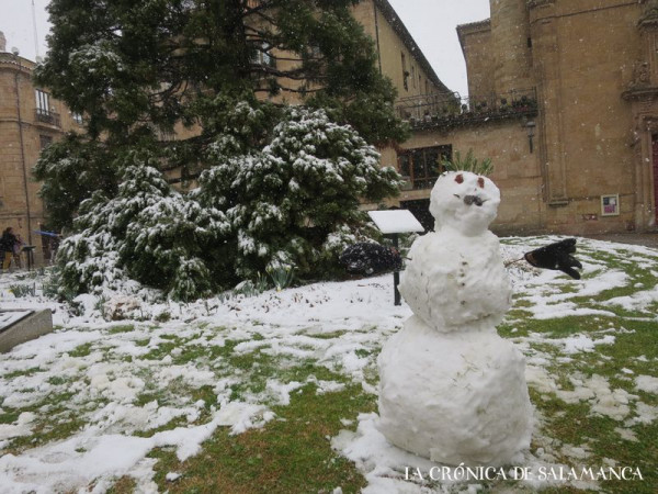 Se cumplieron las previsiones meteorológicas y la nieve visitó este jueves la ciudad del Tormes. La nevada comenzó tenue pasadas las nueve de la mañana, pero luego aumentó su intensidad ostensiblemente.