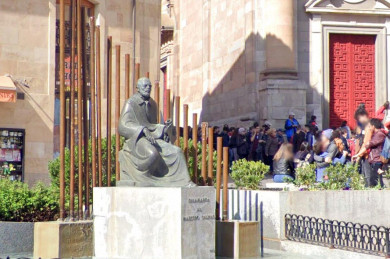 Del mismo artista es la cabeza de Diego de Torres Villarroel, el profesor polifacético que lo mismo ejercía de médico que de cura, de astrólogo que de matemático, sacerdote, bailarín, torero o guitarrista. El profesor sagaz para el que se escogió el mejor lugar para lucir su sabiduría, al lado de la Cueva de Salamanca y la torre del marqués de Villena, recoveco reservado para nigromantes y alquimistas. El hombre que engañó al ecónomo de la Universidad que no quería abonarle los globos terráqueos por no ser libros, esferas adquiridas por él para enseñar a sus alumnos los conocimientos de geografía. Diego Torres se las ingenió para cobrar la factura, escribió en el albarán que se trataba de una partida de libros redondos.