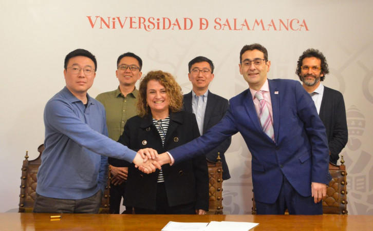 Liu Bo, su director, ha visitado la ciudad para rubricar el acuerdo con el consejero delegado de Cursos Internacionales de la Universidad de Salamanca, José Miguel Sánchez Llorente, en presencia de la vicerrectora de Salud y Asuntos Sociales, Ana María Martín, y del director de las Escuelas de Lengua Española de la USAL, Rubén Ramírez. Zhou Jingwen y Shen Jian, socios directores de ELE USAL Beijing, también han estado presentes en el acto.