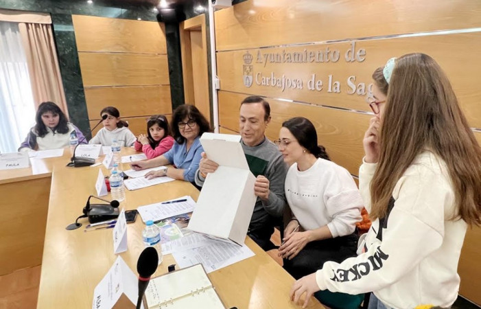 Los escolares de Carbajosa de la Sagrada han participado esta tarde en el Consejo de Niños y Adolescentes de este trimestre. Una sesión presidida por el alcalde del municipio, Pedro Samuel Martín, junto con la concejala de Educación, Alba Hernández; y la jefa del Área de Cultura, Pilar Sánchez, en la que han escuchado y recibido las propuestas de los pequeños que han trabajado estos meses en las asambleas de los programas Ciudad de los Niños y CiberCarba para mejorar el municipio.
