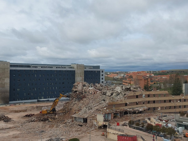 En primer lugar, que el Plan Funcional del Nuevo Hospital contemplaba que, una vez trasladadas las unidades del Hospital Clínico Universitario, servicios que se completó en primavera del 2022, el viejo edificio del clínico se vaciaría y se pondría a disposición de la empresa adjudicataria para proceder a su derribo. Esta operación comenzó quitando la cubierta del edifico.