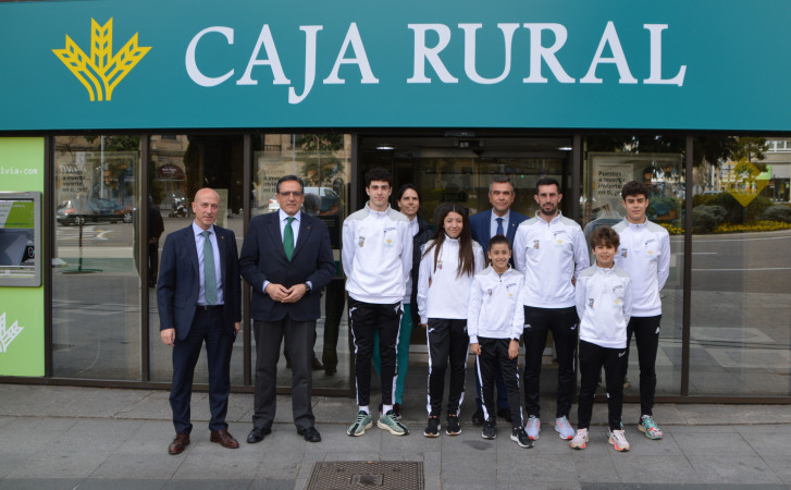 Álvaro González Fernández, joven promesa del deporte salmantino, ha visitado la sede central de Caja Rural de Salamanca en agradecimiento al patrocinio que la entidad hace al Club Caja Rural-Atlético Salamanca, acompañado del presidente del club Víctor Mateos, Marta Fernández responsable técnica y varios jóvenes atletas. Por parte de Caja Rural les han recibido el director comercial Agustín Pérez, el director de marketing Vicente Jaén y Francisco García, Jefe de Zona.