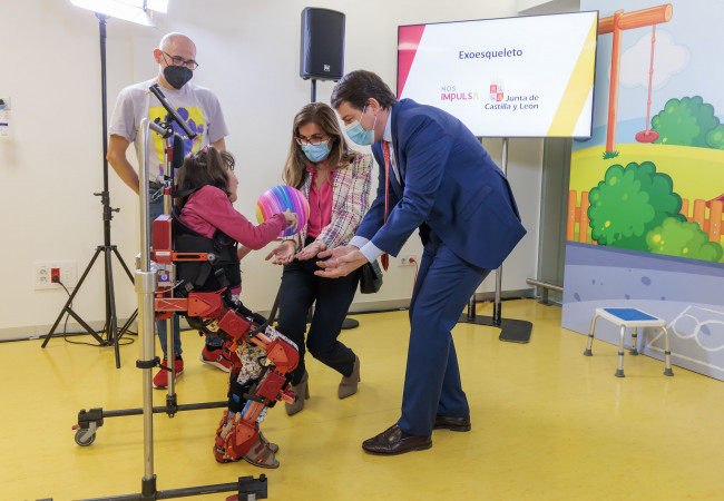 Lola es la niña que ha probado este miércoles el exoesqueleto en presencia de sus padres, Andrés Gutiérrez y Paula Aller, así como de los profesionales de la Unidad de Rehabilitación del Clínico, de la diseñadora Elena García Armada y de las autoridades de la Comunidad, entre ellas, Fernández Mañueco quien aseguró que había sido uno de los actos “más gratificantes” de su etapa como presidente de la Junta estos cuatro años. “Nos vamos con la satisfacción del deber cumplido”, dijo.
