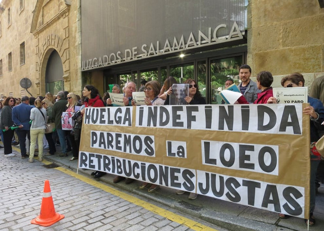 Los funcionarios de la administración de Justicia se han manifestado este jueves en Salamanca reivindicando unas «retribuciones justas» en cuanto a las funciones que realizan y contra la Ley de Eficiencia Organizativa. La huelga ha contado con un seguimiento de alrededor del 60%, según fuentes sindicales.