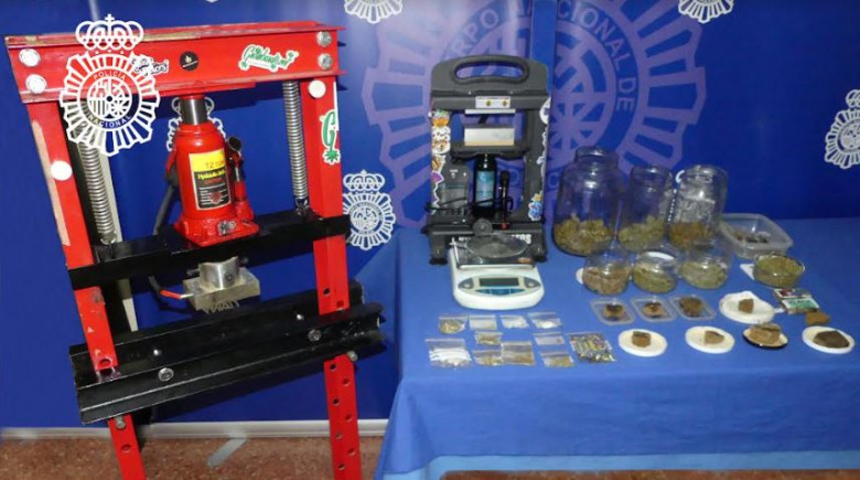 En el interior del local, que tiene un sótano al que se accede por unas escaleras, había varias cámaras de vigilancia instaladas, así como sistemas de extracción, dos prensas hidráulicas, mobiliario y una vitrina con cajones numerados en cuyo interior se localizó sustancia estupefaciente fraccionada compuesta por 350 gramos de hachís y 171 gramos de marihuana, así como con botes de cristal de diferentes tamaños dispuestos en sus baldas conteniendo en su interior tanto hachís como marihuana y un libro de registro de socios.