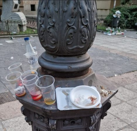 La Plaza de los Bandos y los aledaños amanecieron este jueves cubiertos de desperdicios y orines de los usuarios de las casetas instaladas en la zona.