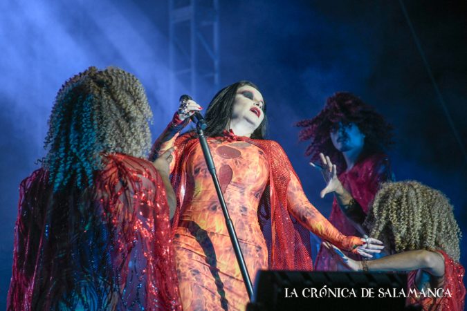 «Gracias por invitarnos. Gracias por estar aquí esta noche. Gracias a los amiguitos que habéis venido de otros sitios de España y hasta de Los Ángeles, California. Bienvenidos todos. Gracias por estar aquí». Así agradeció la Reina de la Movida volver a tocar en la Plaza Mayor de Salamanca. La última vez que se subió a este escenario fue en 2016.