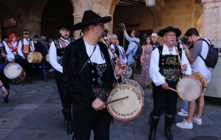 Simpatizantes de la extrema derecha de Salamanca irrumpieron a empujones este domingo por la mañana en la Plaza Mayor, donde se estaba celebrando el Día del Tamborilero.