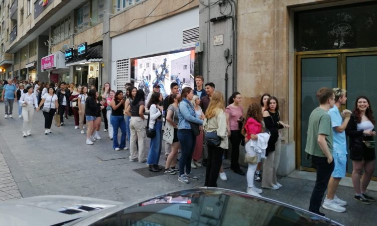 Los caminantes del paseo de la Estación y los usuarios de La Alamedilla se sorprendieron esta martes a eso de las 20.00 horas con una gran cola de jóvenes hablando otras lenguas, cual Torre de Babel en Salamanca