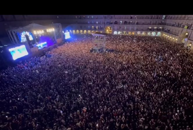 Juan Magán comparte un vídeo en sus redes sociales del aspecto que ofreció la Plaza Mayor de Salamanca durante el concierto que ofreció este jueves, dentro del programa de Ferias y Fiestas