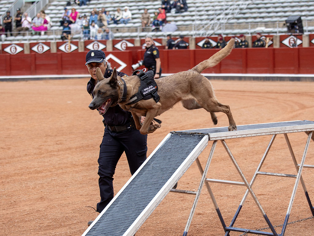La plaza de toros de La Glorieta de Salamanca acogió este sábado la exhibición policial enmarcada dentro de los actos programados con motivo del Día de la Policía, y en la que los agentes de diferentes unidades mostraron diferentes técnicas de intervención y pericia.