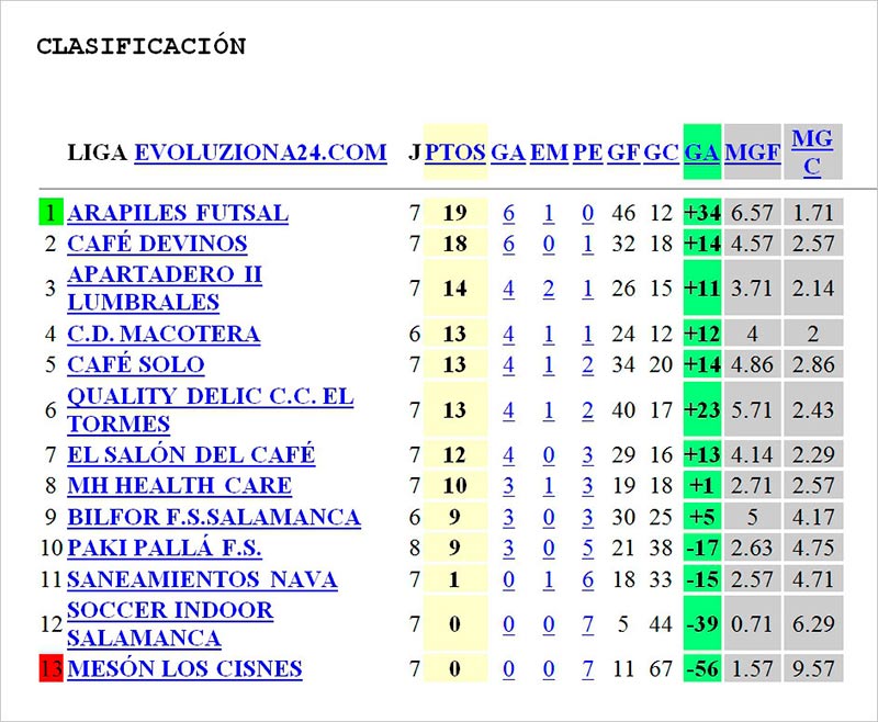 Por la parte baja sigue Mesón Los Cisnes, y Soccer Indoor Salamanca, que esta vez se quedaron cerca de arañar su primer punto frente al MH Health Care.