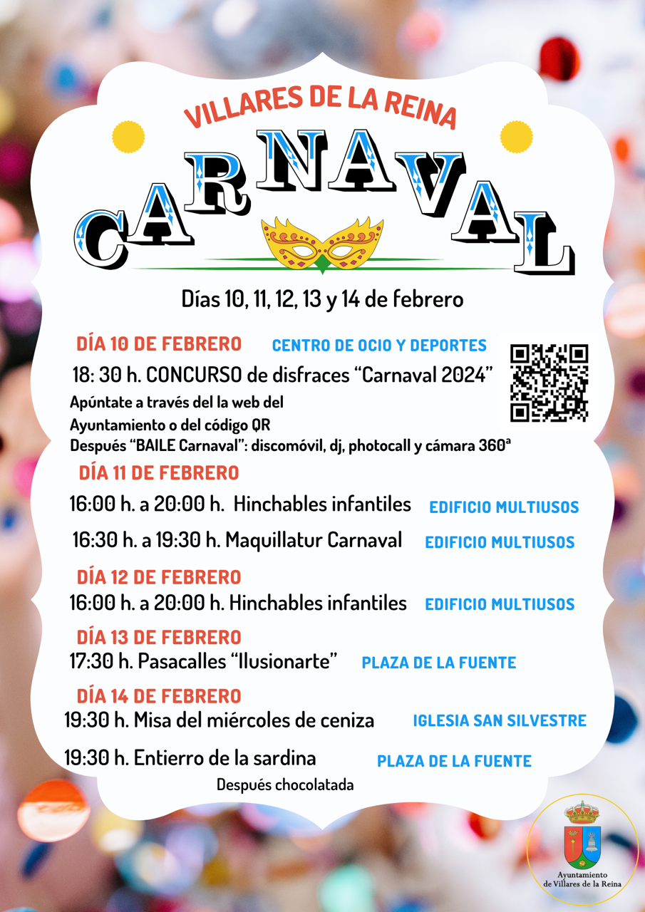 Los carnavales están a la vuelta de la esquina y un año más Villares de la Reina se disfraza para celebrarlos. La concejala de Festejos y Participación Ciudadana, Sonia Cabrero, ha explicado que “se quiere plantear un programa de Carnaval para el disfrute familiar de los habitantes del municipio durante los 5 días que dura la festividad este año”.
