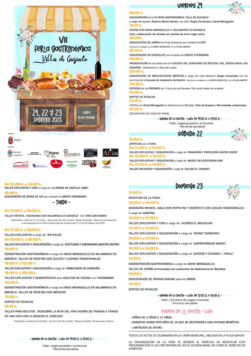 Guijuelo celebra este fin de semana la séptima edición de su Feria Gastronómica, enmarcada en las jornadas de la ‘Matanza tradicional‘. La inauguración está prevista para el viernes, a las 18 hora, y correrá a cargo del chef televisivo Sergio Fernández y varios miembros de la Escuela de Hostelería de Madrid, quienes elaborarán tacos ibéricos mexicanos. Ese mismo día se celebrará el V concurso de recetas ‘Del cerdo hasta los andares’.