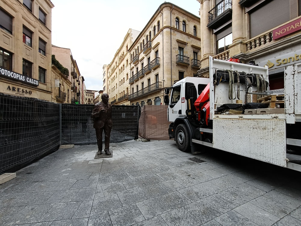Este jueves ha regresado a la plaza del Liceo, para que oriundos y visitantes se fotografían junto a Vicente del Bosque, porque sin lugar a dudas, es la estatua más fotografiada de Salamanca.