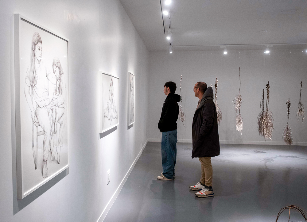 Las estudiantes abordan en su proyecto expositivo las diferentes perspectivas del nido, desde una visión de refugio, como inicio o como refugio familiar. En este sentido, Almudena S. Mata explora este concepto desde un espacio en el que “convergen la vulnerabilidad y el consuelo, la seguridad y la búsqueda. El nido, entendido como refugio o guarida, se convierte en un símbolo cargado de significado, donde el tiempo se diluye y lo conocido cobra vida en un viaje hacia los primeros recuerdos”.