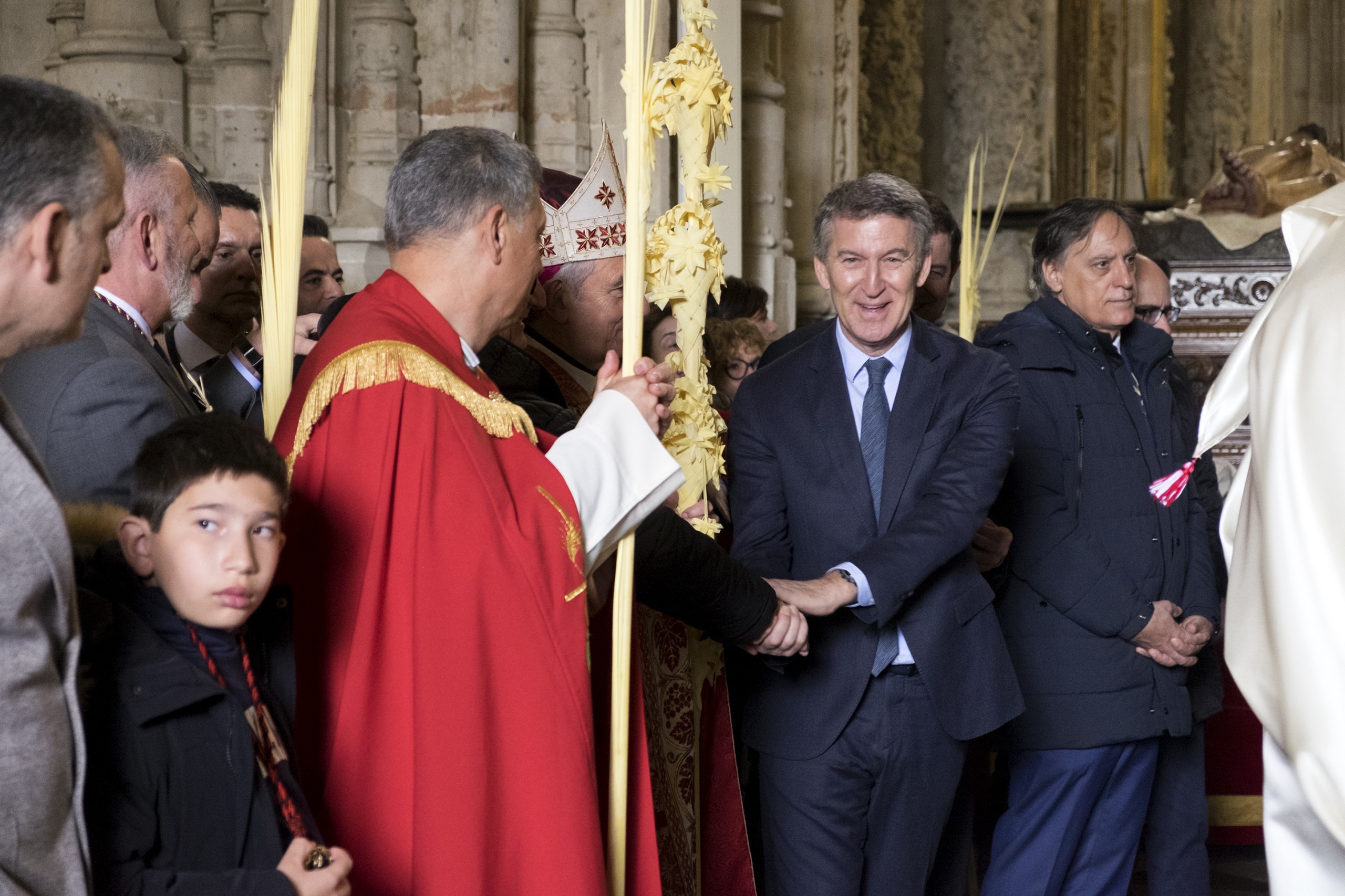 Alberto Núñez Feijóo visitó Salamanca este Domingo de Ramos. Acudió a la Catedral donde saludó a todos y cada uno de los hermanos mayores de las cofradías capitalinas, así como a los cofrades que se acercaron a conocerlo. Ejerció de anfitrión Alfonso Fernández Mañueco, salmantino y presidente de la Junta de Castilla y León.