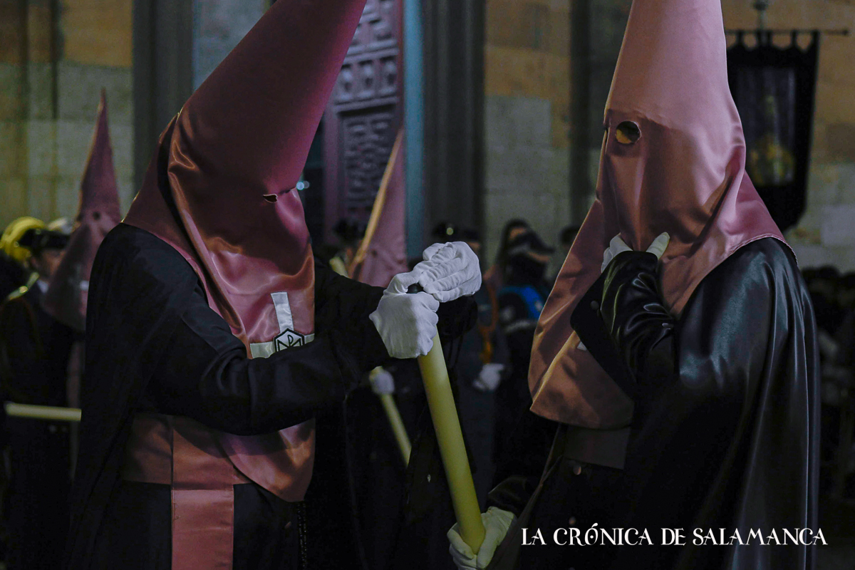 Este Miércoles Santo procesionó por las calles salmantinas la Hermandad de Nuestro Padre Jesús Flagelado y Nuestra Señora de las Lágrimas. El recorrido procesional partió de la Clerecía escoltados por agentes de la Guardia Civil y con los acordes del himno nacional.