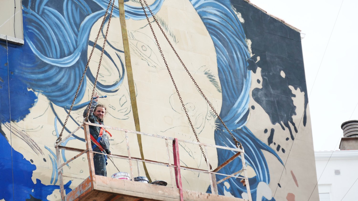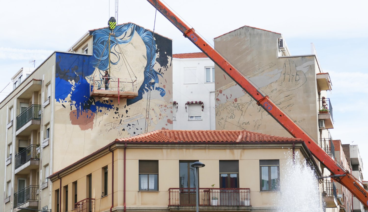 En su equipo están también sus ayudantes, Martina y Manuel McKennea, que han participado ya en varias obras con el afamado creador. Desde que realizaron, tutorizados por él, sus prácticas del grado superior de ‘Artes aplicadas al muro’, son muchas las horas que han pasado juntos en las alturas, creando otros mundos con sus pinturas y rodillos, pues han colaborado ya en al menos seis trabajos más, todos de gran tamaño y con el uso de grúas para acceder a las fachadas, como explica Martina.