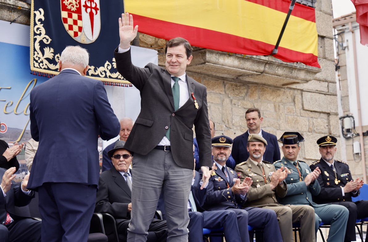 J.M.A. / ICAL.- Fernández Mañueco participó este primero de mayo en el acto central de la Feria de San Felipe, celebrado en la localidad de Barruecopardo, en provincia salmantina, donde recibió la medalla institucional otorgada por el Ayuntamiento a la Junta de Castilla y León, en reconocimiento a su apuesta por el desarrollo rural y la mejora de los servicios públicos en dicho municipio.