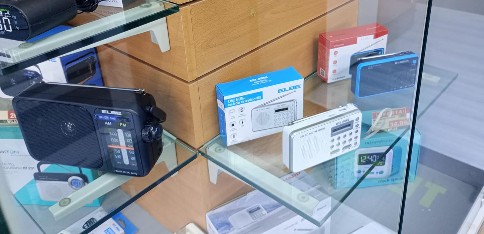 Otro de los productos estrella a raíz del gran apagón y que también forma parte del kit recomendado la UE es el transistor a pilas, de gran utilidad para mantenerse informado a través. Milar Mayfe ha notado un considerable aumento de ventas de este tipo de aparatos, y de hecho tiene una vitrina llena, así como más modelos en el escaparate, al menos “de momento”, apuntan.