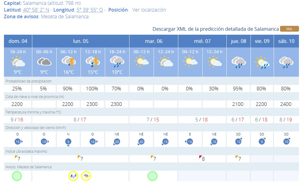 Previsiones de la Aemet para Salamanca capital: