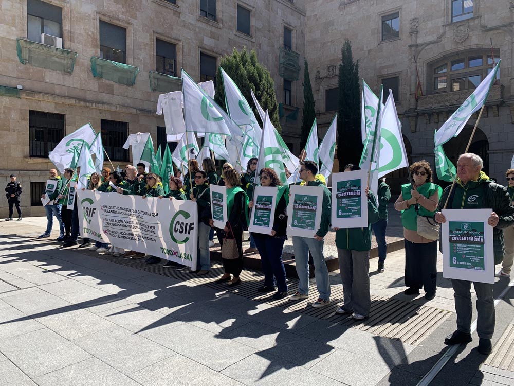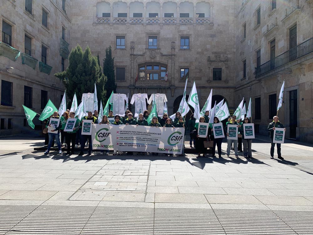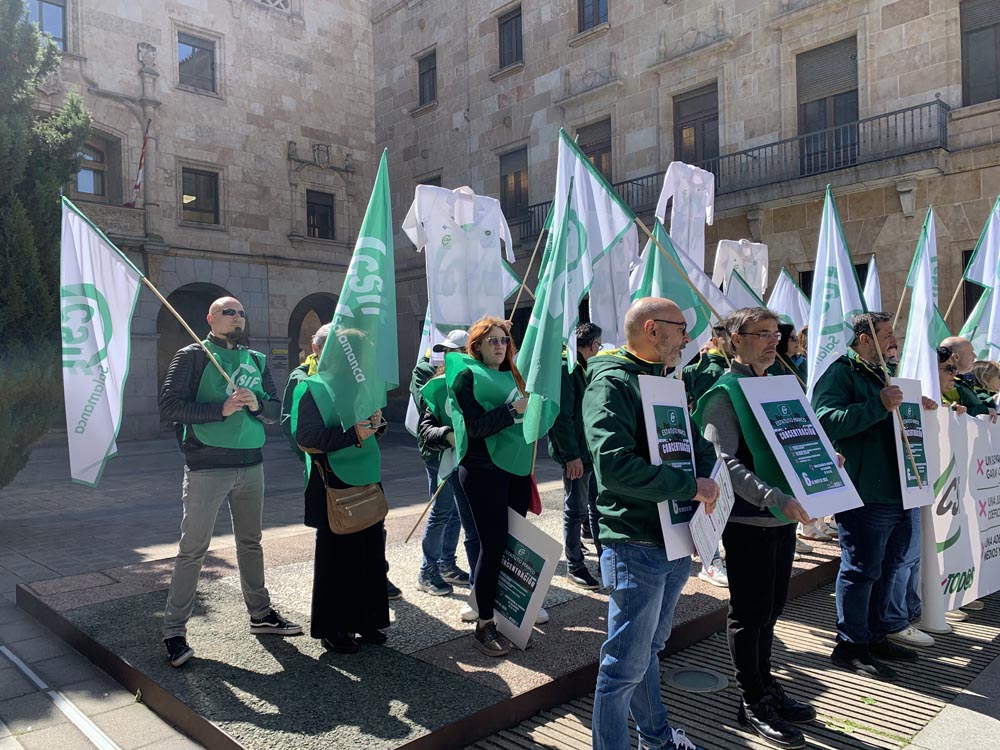 Dice un refrán que al médico, abogado y cura, no le andes con engaño. Parece que la Ministra de Sanidad, Mónica García, no se muestra muy sincera con el personal del Sistema Nacional de Salud de la Central Sindical Independiente y de Funcionarios -CSIF- que se concentraron este martes en la plaza de la Constitución -donde está la sede de la Subdelegación del Gobierno- en protesta por la falta de compromiso de la ministra Mónica García para presentar una propuesta con mejoras salariales y una nueva clasificación para todos los colectivos y categorías de la Sanidad. «Estamos aquí, porque ya no nos valen más palabras vacías», señala Antonio Grande, responsable de Sanidad del CSIF de Salamanca.