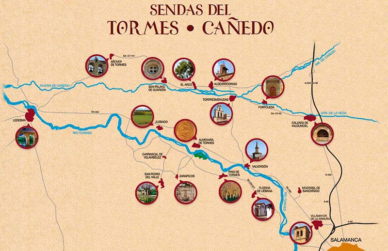 Sendas del Tormes-Cañedo pone a disposición de los visitantes un gran número de restaurantes, hoteles y alojamientos rurales, así como museos, centros de interpretación y una amplia red de senderos.