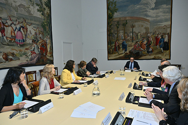 La gerente de Patrimonio Nacional, María Dolores Menéndez, subrayó que la obra de Luis Alberto de Cuenca se distingue por “su estilo claro y preciso, con una mirada crítica hacia la tradición literaria y un tono a menudo irónico o melancólico”.