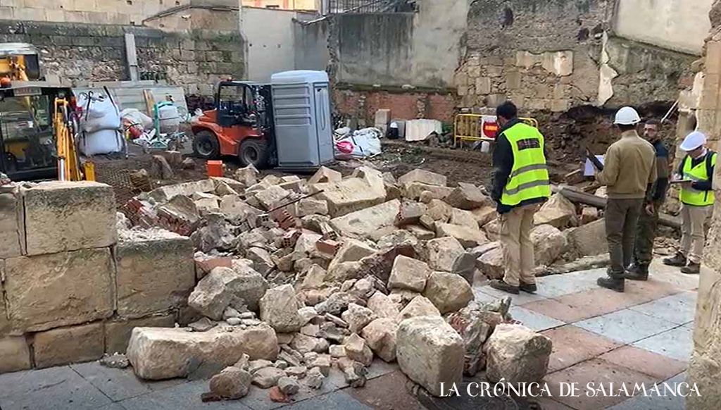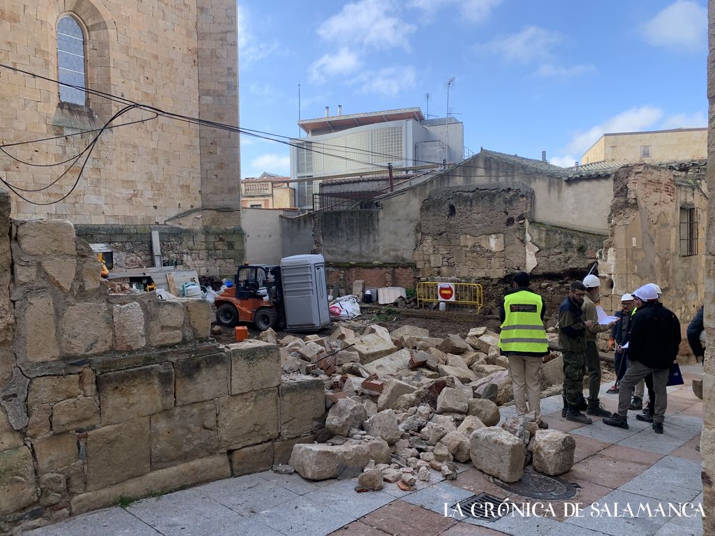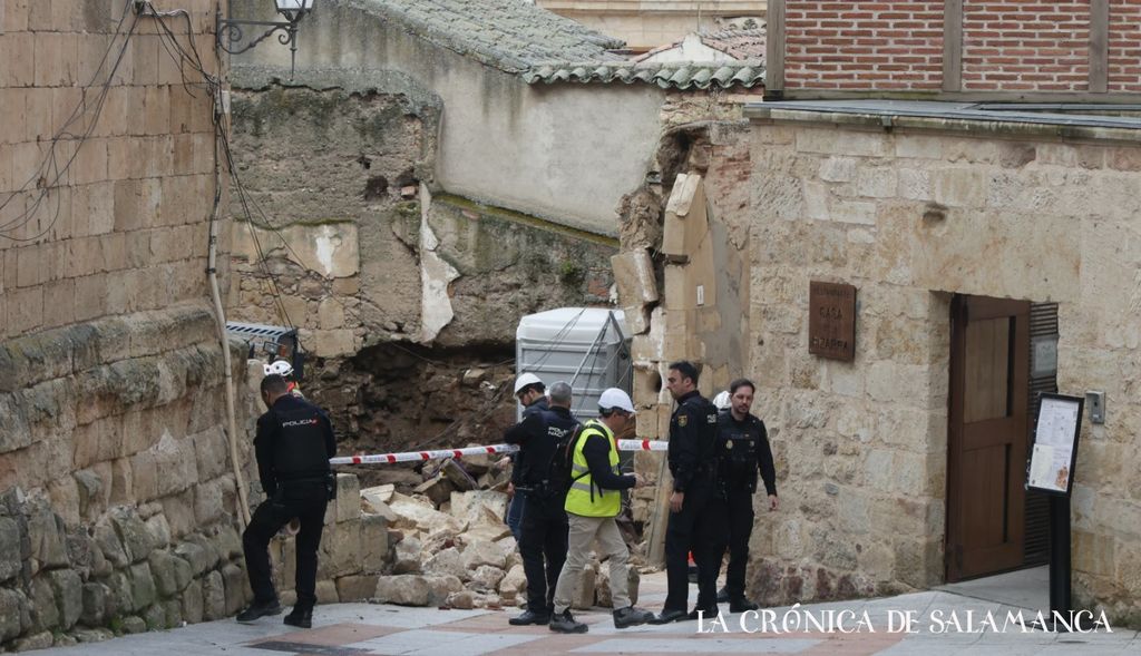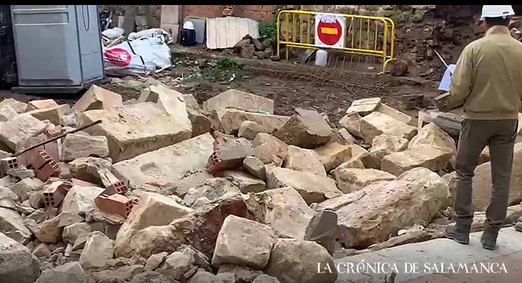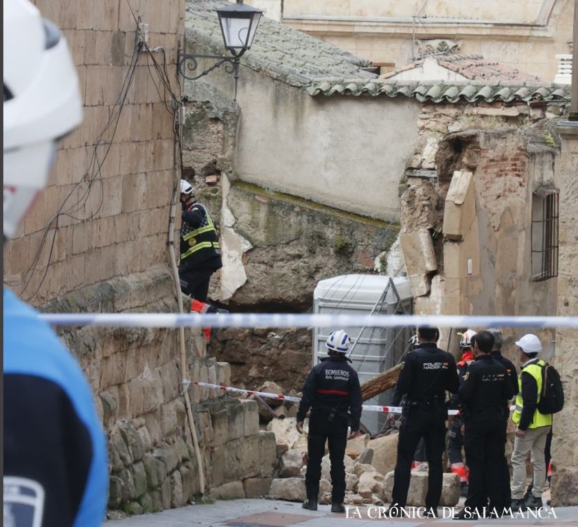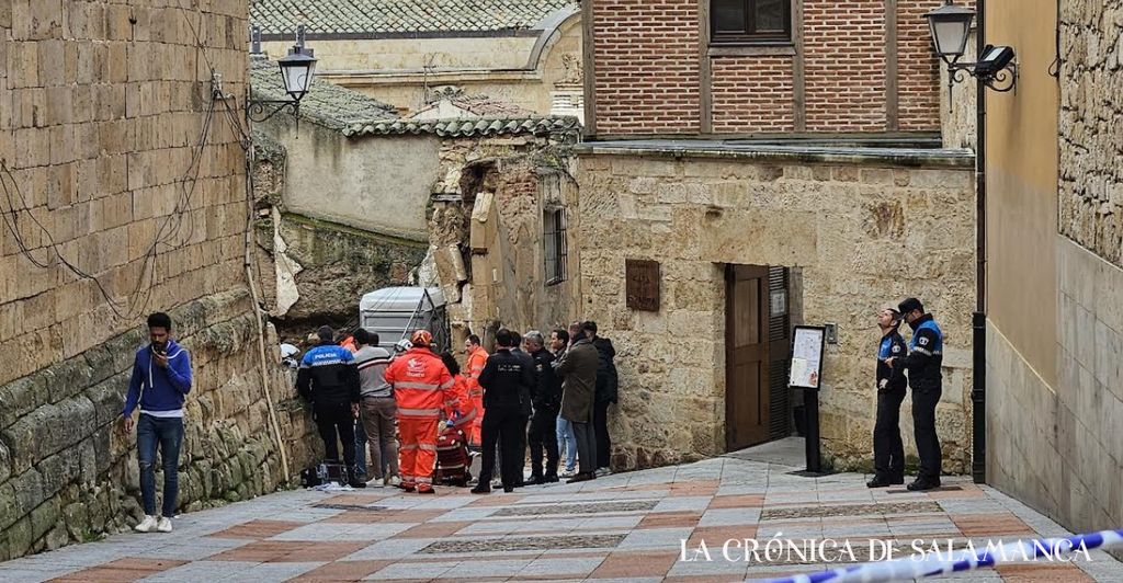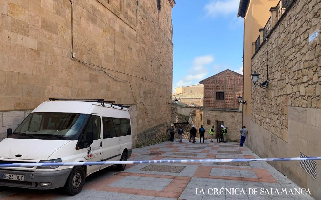Dos trabajadores quedaron atrapados este miércoles bajo los escombros al derrumbarse el muro en el que estaban trabajando en la calle Tentenecio.