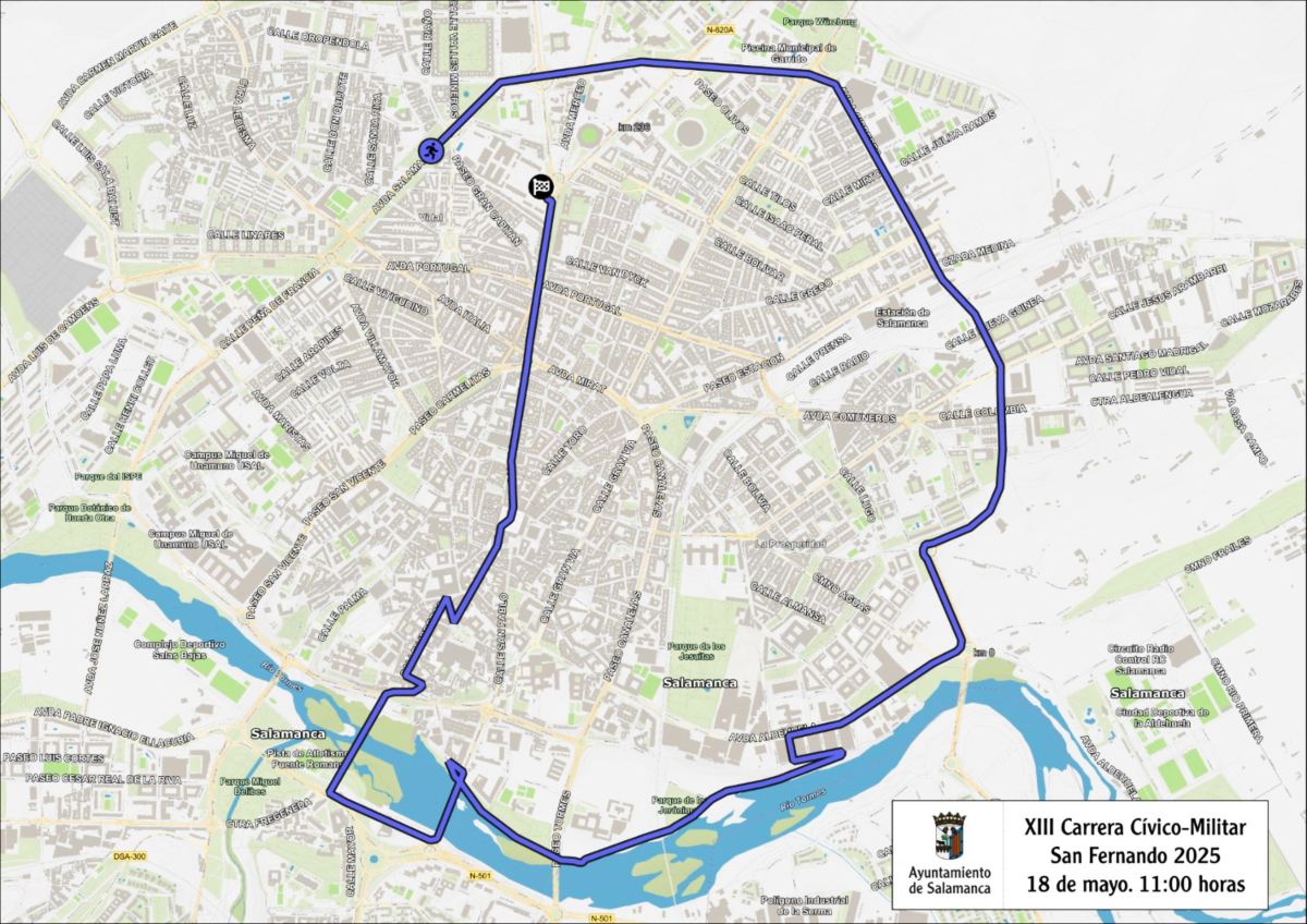 Se verán afectadas la avenida de la Salamanca, la de los Cipreses, la calle Río Miño, avenida Reina Berenguela, avenida Fernando III, glorieta de la Policía Local, Paseo Fluvial, calle San Nicolás, puente de Enrique Estevan, paseo de la Iglesia Nueva del Arrabal, Puente Romano, calles Veracruz, Libreros, La Fe, plaza de Anaya, calle Rúa Mayor, Plaza Mayor, calle Zamora y paseo del Doctor Torres Villarroel.