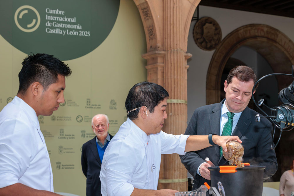 J.M.A. / ICAL. Así se explicó durante su intervención en el acto de clausura de la I Cumbre Internacional de Gastronomía de Castilla y León 2025 ‘Una cocina monumental’, organizada por la Junta en distintos espacios patrimoniales de Salamanca, donde afirmó que la cocina es “todo un referente de calidad” en la Comunidad y un “elemento fundamental en su proyección internacional”.