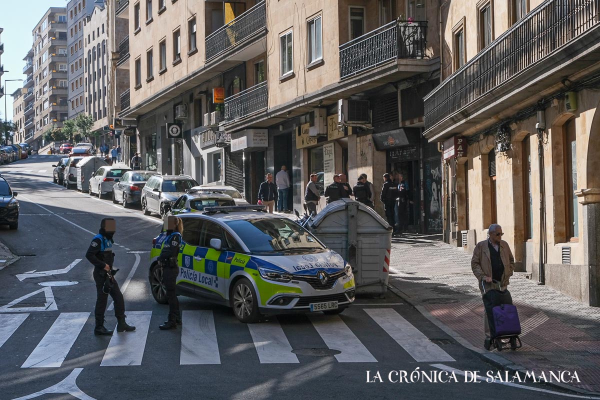 Los agentes cortaron el tráfico rodado en la calle para evitar posibles incidentes, ya que la intervención policial se produjo pasadas las nueve de la mañana, con la ciudad ya bullendo.