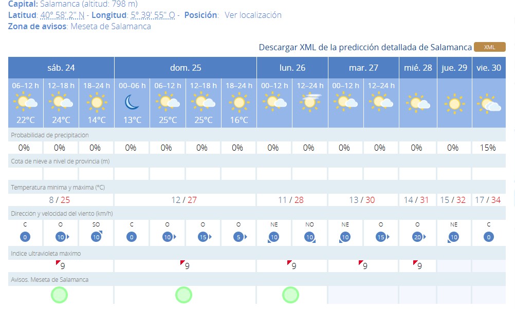 La madrugada del sábado es la última fresquita a la vista, al menos durante los próximos siete días, según las previsiones de la Agencia Estatal de Meteorología (Aemet) para Salamanca.