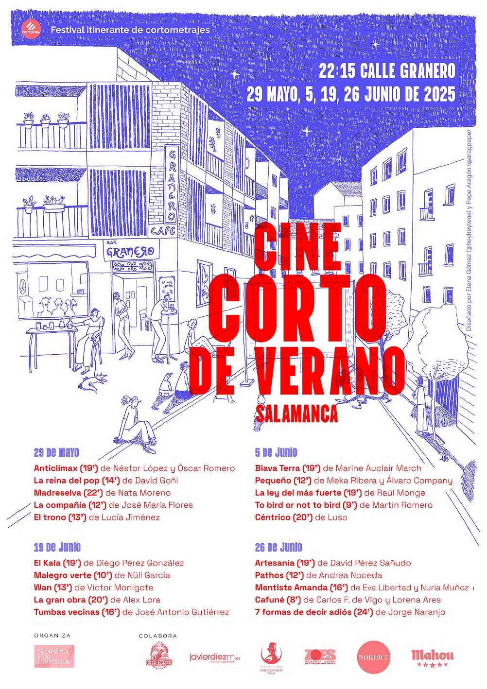 Buen tiempo y cine forman una pareja ideal. Este jueves, a partir de las 22:15 horas, comienza en el Barrio del Oeste una nueva edición del Festival de Cine Corto de Verano de Salamanca, organizado por Salamanca Film Commission, perteneciente al Ayuntamiento. En este primer pase se proyectarán los cortos ‘Anticlímax’, ‘La reina del pop’, ‘Madreselva’, ‘La compañía’ y ‘El trono’.