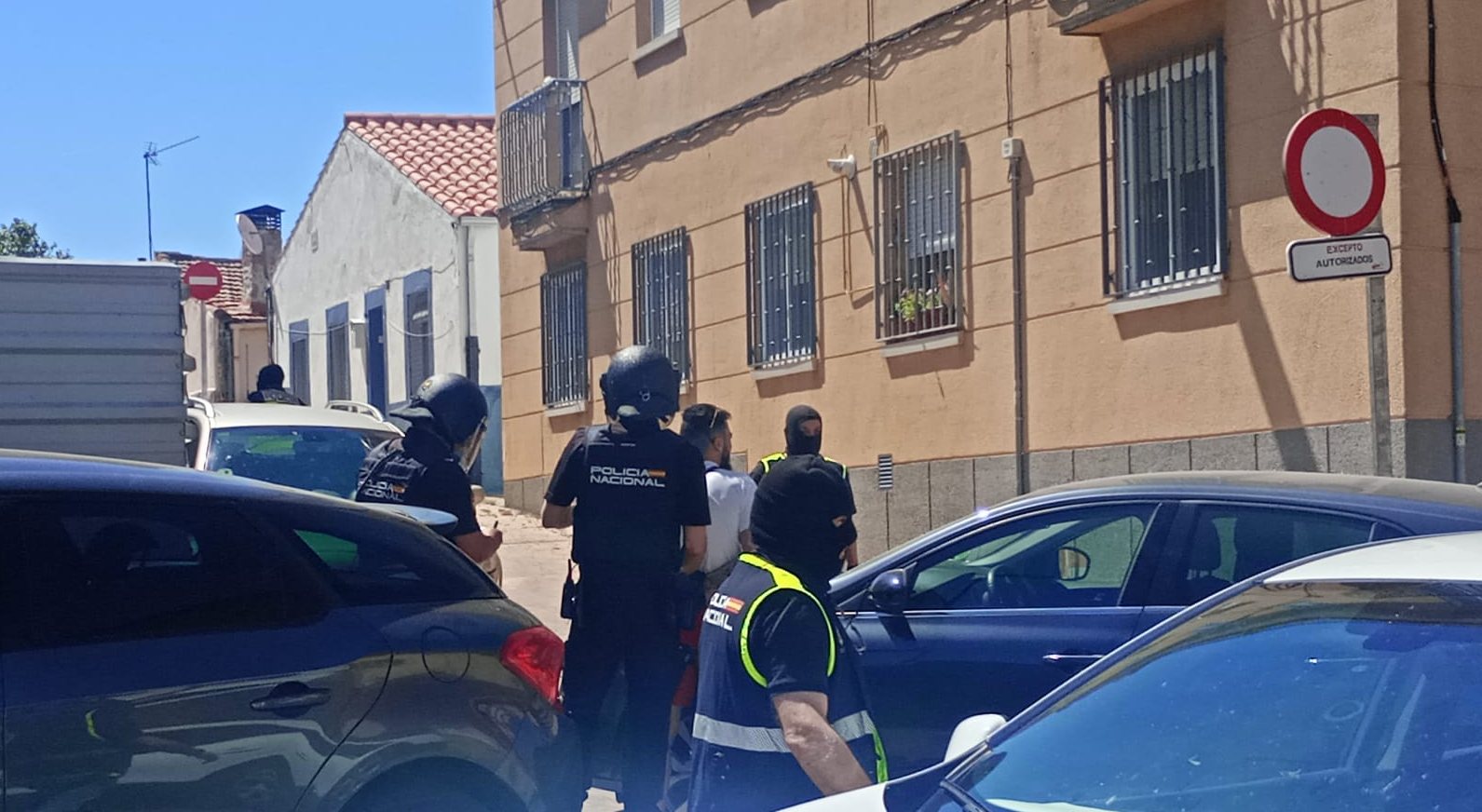 En un principio, la Policía Nacional pudo entrar en la casa, de dos plantas y con la mayoría de sus balcones y ventanas valladas, a través de una situada en el piso bajo pero, pese a ello, pidieron la presencia de los Bomberos para abrir la puerta. Hasta el lugar se han desplazado al menos dos furgones policiales.