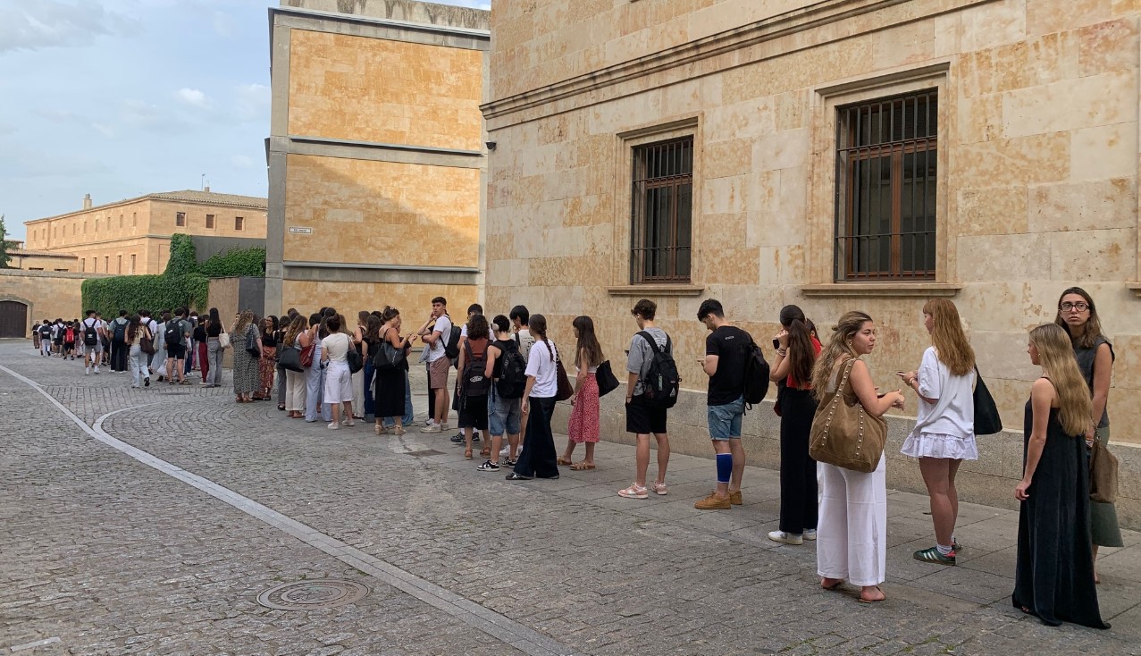 Y para muestra, la larga cola que se formó este domingo para acceder a la biblioteca Abraham Zacut, en el campus de ciencias.